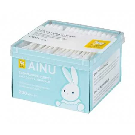 Ainu Eko-Pumpulipuikot sopivat hyvin vauvan hellään puhdistamiseen ja hoitoon. Pumpulipuikolla saat helposti sekä tarkasti puhdistettua ja kuivattua vauvan navan. Hyvin muotonsa pitävinä ja nukkaamattomina ne sopivat erinomaisesti myös haavojen puhdistukseen sekä päivittäiseen kauneudenhoitoon.