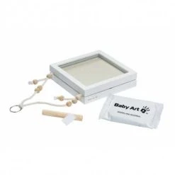 Upea, boho-tyylinen vauvamuisto, johon voit tallettaa pikkuisesi kuvan ja kolmiulotteisen vauvan kädenjäljen tai jalanjäljen. Baby Art valokuvakehys on helppo ripustaa seinälle, jossa sitä koristaa puiset helmet, luonnolliset narut, sekä valkoiset kehykset. Tämä vauvamuisto on ihana sovittaa osaksi lasten huoneen sisutusta tai antaa se lahjaksi isovanhemmalle tai tuoreelle perheelle.