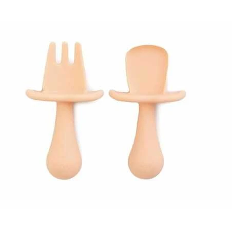 Ensiaterimien muoto ohjaa lasta laittamaan lusikan ja haarukan suuhun juuri sopivasti ja pehmeä silikoni tuntuu mukavalta vauvan ikenillä.