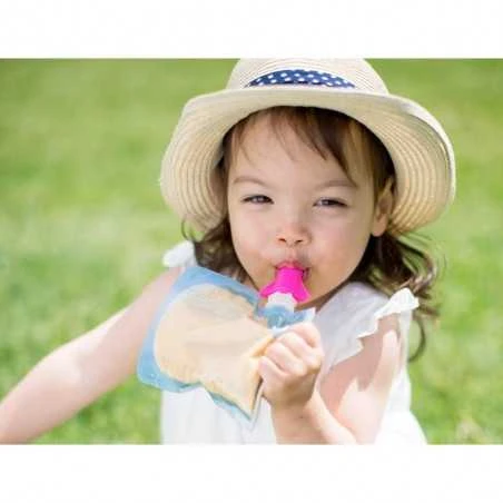 Imuventtiili sopii myös Cherub Baby:n omiin täytettäviin ruokapusseihin, joita myydään 10 kappaleen pakkauksissa. Näin voit valmistaa itse omat soseruoat mukaan, ja syöttää niitä kätevästi lapselle missä tahansa.