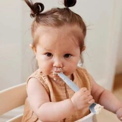 Everyday Baby silikonilusikka on turvallinen valinta ensilusikaksi. Pehmeän silikonilusikan kärki on hellä vauvan herkille ikenille ja suulle. Lusikka on suunniteltu vauvan syöttämiseen – pitkästä ergonomisesta varresta saat hyvän otteen ja sisällä oleva metalli pitää lusikan vakaana. Pitkä varsi ylettyy helposti kulhon pohjaan asti ja on tarpeeksi tukeva ruuan sekoittamiseen.