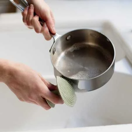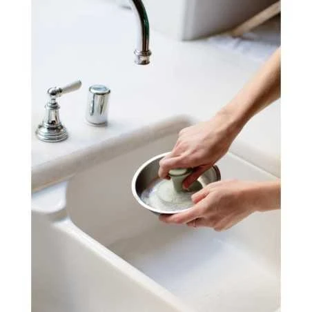 Näppärän koon ja erityisen muotoilun ansioista pesusieni pysyy kivasti kädessä ja taipuu myös astian koloihin. ezpz-astioiden omaisesti pesusieni on varusteltu imukupilla, jolloin sen saa vaikka tiskialtaan reunaan kiinni. Tämä on täydellinen väline pesemään ezpz-astiasi!