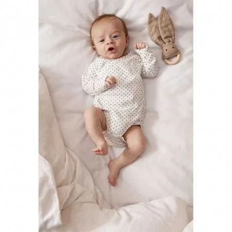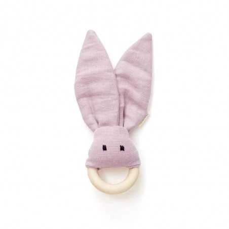 Vauvan on helppo tarttua puurenkaaseen, ja lelun korvat on täytetty maissikuidulla sekä selluloosa-arkilla, joka saa ne rapisemaan. Tämä helistinlelu sopii aivan pienimille vauvoille, joten tämä on myös erittäin soma lahjaidea vauvajuhliin tai vastasyntyneelle!