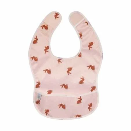 Lässig vettähylkivä taskullinen ruokalappu tulee kätevässä tuplapaketissa. 26x38cm kokoinen ruokalappu on ideaali 6-24kk ikäisille lapsille, jotka harjoittelevat itsenäistä syömistä. Tasku suojelee lapsen vaatteita tippuvalta ruualta. Käytännöllisen tarrakiinnityksen ansiosta lappu on helppo laittaa päälle ja riisua. Ruokalapun materiaali on kevyttä ja menee pieneen tilaan, joten se on täydellinen myös matkoilla ruokailuun. Lapun voi pyyhkäistä kostealla tai pestä pesukoneessa 40°C. Leikkimieliset printit kertovat tarinaa metsästä ja sen asukeista. Valikoimassa 2 eri mallia: kettu vihreällä pohjalla tai jänis pinkillä pohjalla.
