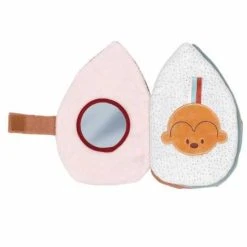 Vauvan pehmokirjassa on apinahahmo satiininauhoilla, mitä on kiva sormenpäillä paijailla. Norsun 3D-kärsällä voi leikkiä ja ilmapallon naruja voi pyöritellä. Kaikki on sävytetty hauskaksi vauvaa varten, mutta yhteen sopivilla, toisiinsa sointuvilla väreillä. Pisaran muotoinen pehmokirja pysyy hyvin vauvan hyppysissä.