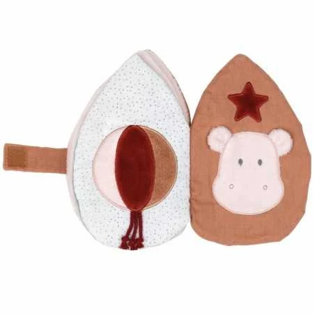 Nattou pehmokirja suloisilla väreillä ja hauskoilla, eri aisteja stimuloivilla ominaisuuksilla. Pehmokirjassa on erilaisia eläinhahmoja, 3D-osia, peili, ja muuta kivaa.