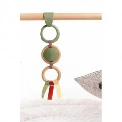 Pyöreä matto on vesipestävissä. Puisia kaaria, sekä leluja voidaa pyyhkiä kostealla liinalla.